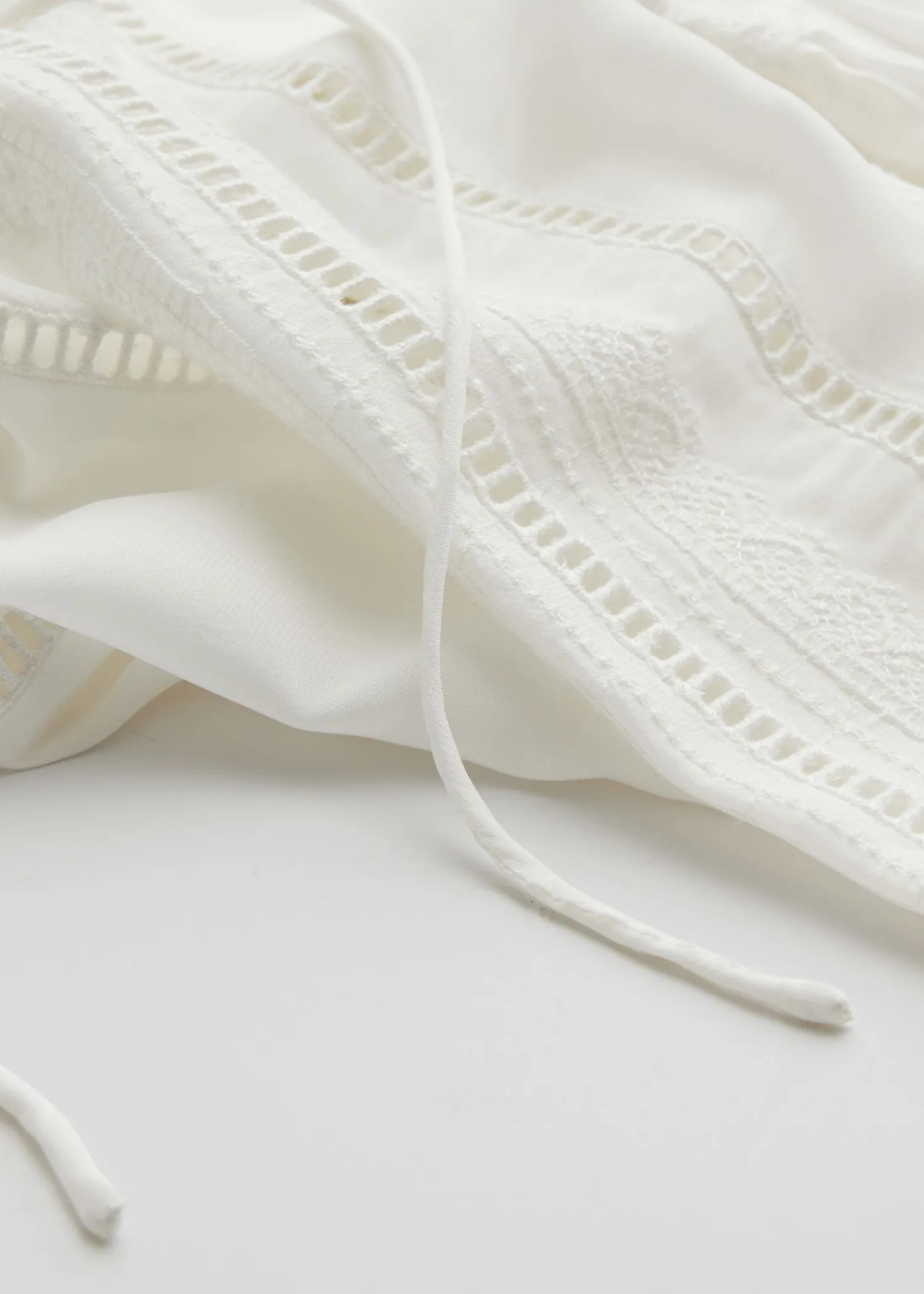 Afslappet Bluse Prydet Med Broderede Detaljer. Afsluttet Med En Flæsekrave Og En Nøglehulsåbning Sikret Med Slips. Vo…