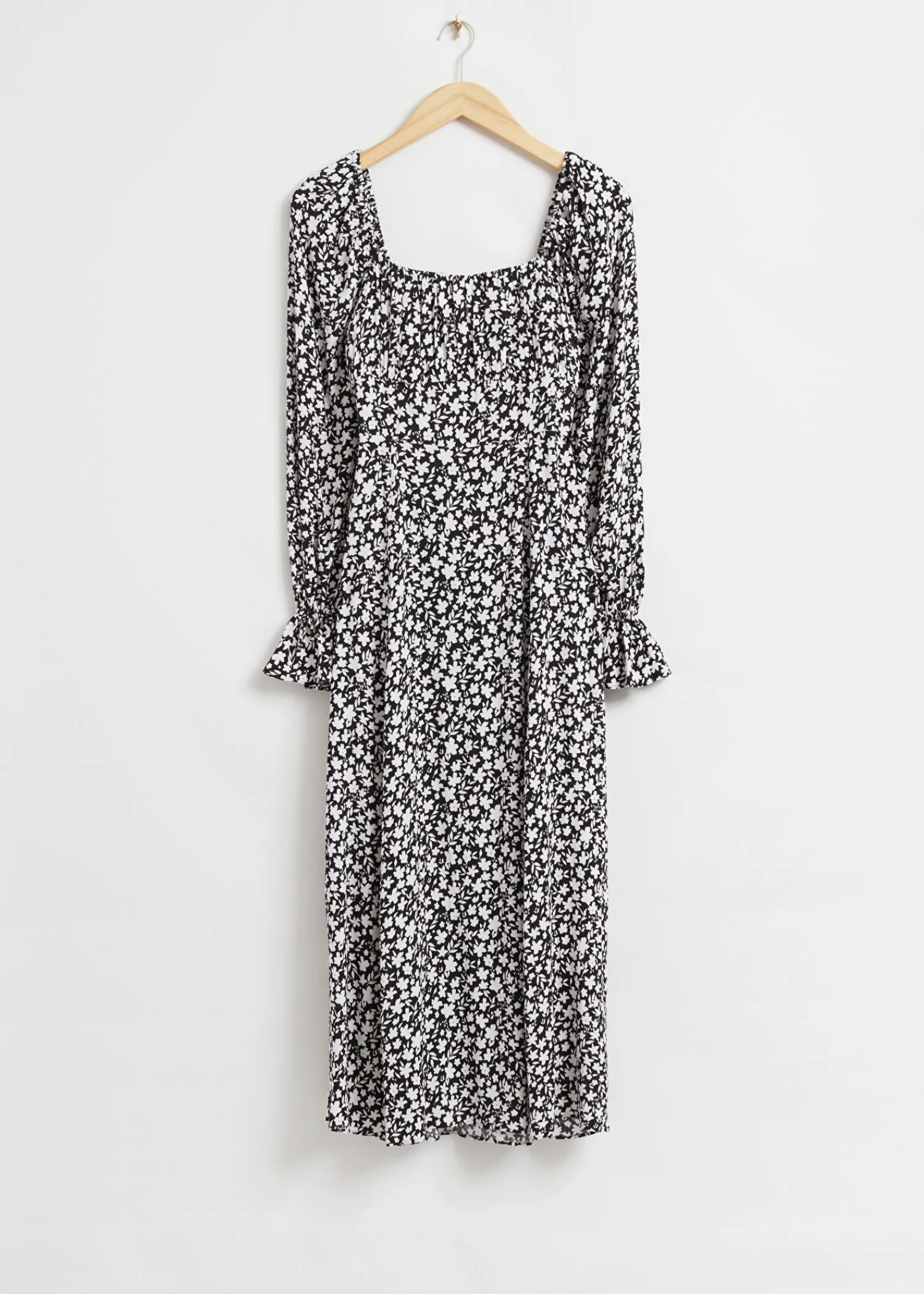 Afslappet Kjole Med Dobbelte Pufærmer Med Pufærmer Samlet Ved Skuldre Og Albuer Med Flæsede Manchetter, En Firkantet Halsudskæring Og En Rynket Barm Med En Lang, Flødig Nederdel Og Sideslids. Afsluttet Med En Usynlig Lynlåslukning I Siden Og Smock Bagpå. Kjolens Længde: 89 Cm / 35″ (Eu 36 / Uk 8 / Us 4)