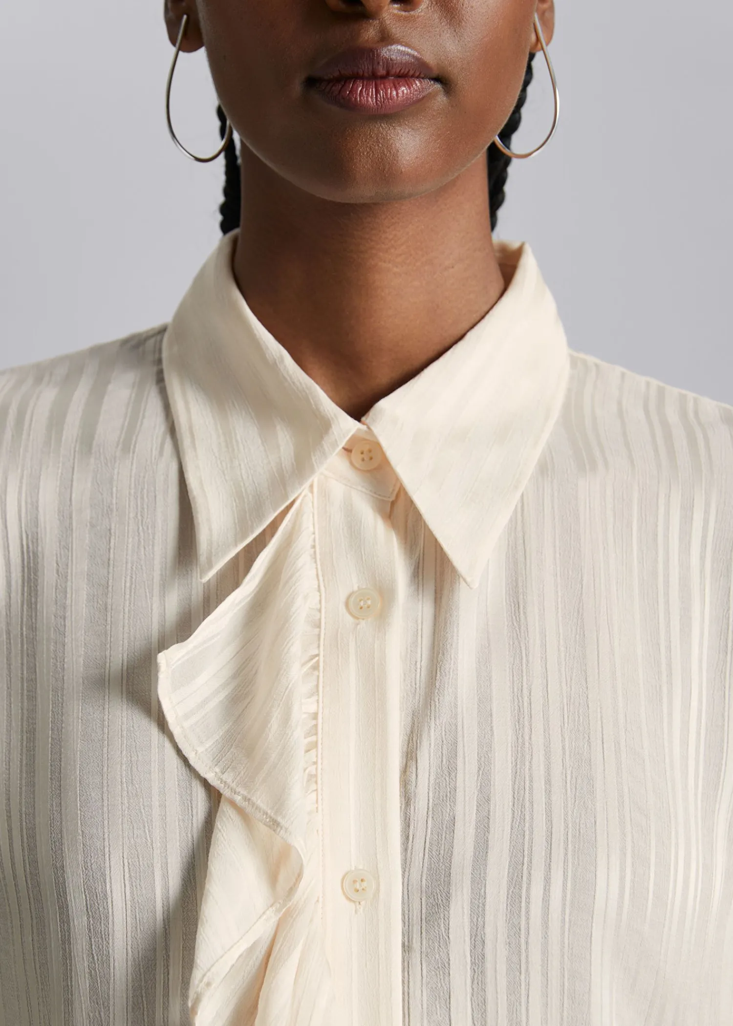 Slank Skjorte I Gennemsigtig, Stribet Finish. Sporet Med Tonale Knaplukninger Og En Flæsestolpe. Længde På Skjorte: 6…