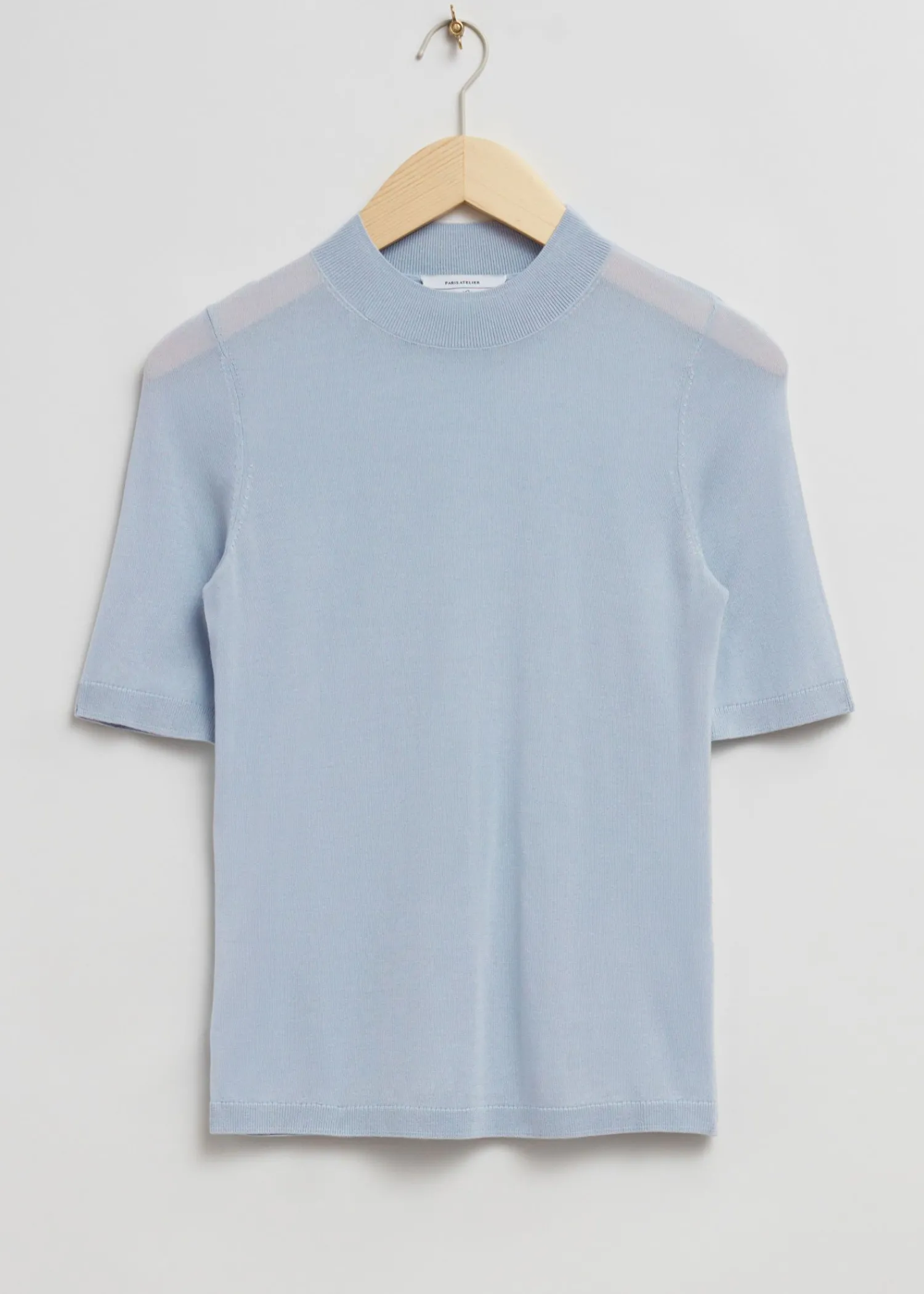 Delikat Strik T-Shirt Lavet Af En Strikket Blanding Af Materialer. Den Kortærmede T-Shirt Har En Rund Halsudskæring Og Afsluttes Med Rib I Hals, Ærmer Og Kant. Længde På T-Shirt: 59 Cm / 23,2″ (Størrelse S)