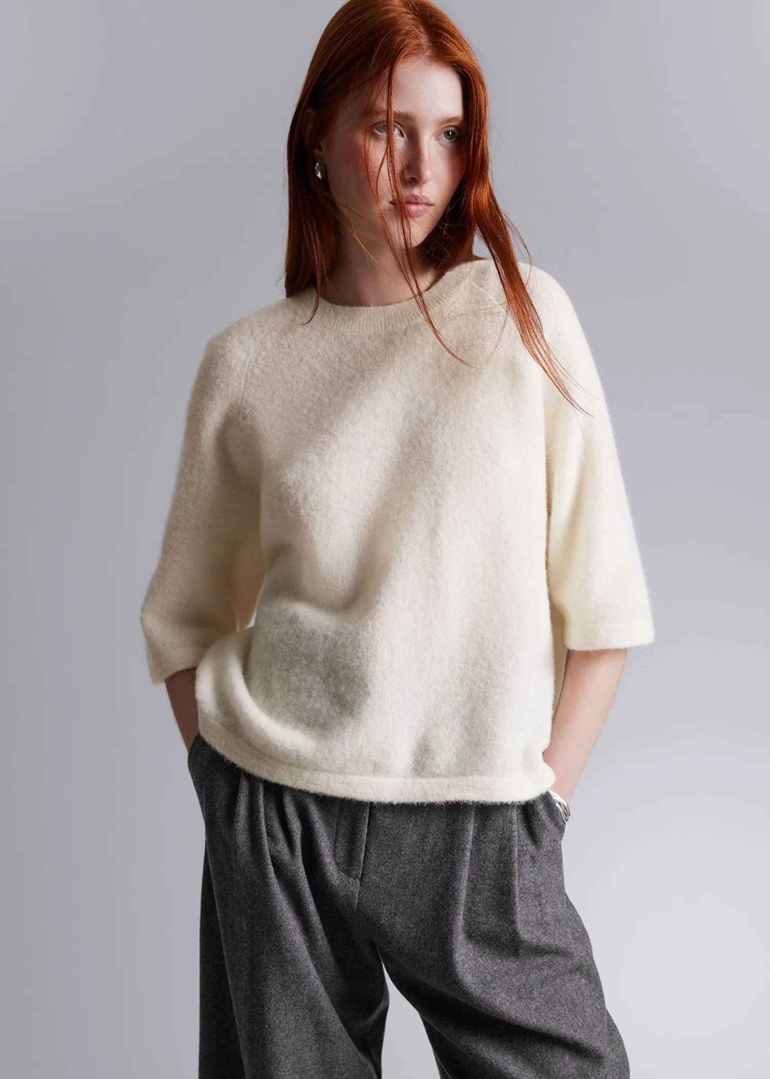T-Shirt Med Rund Hals Strikket Af Alpaca Og Merinould. Raglanærmer 40% Ras Alpaca Certificeret Af Control Union 893290 32% Rws Uld Certificeret Af Control Union 893290 Længde På T-Shirt: 55,5 Cm / 21,9″ (Str. S)