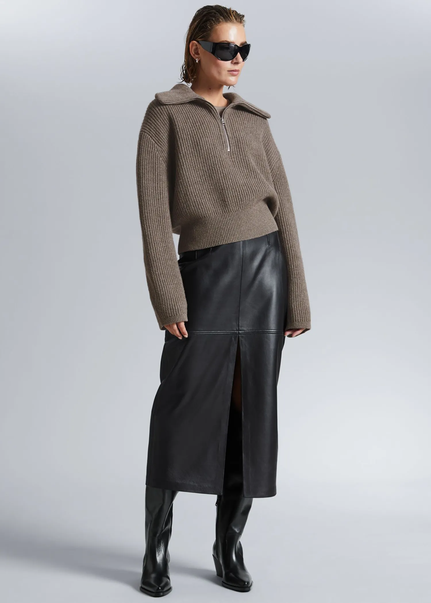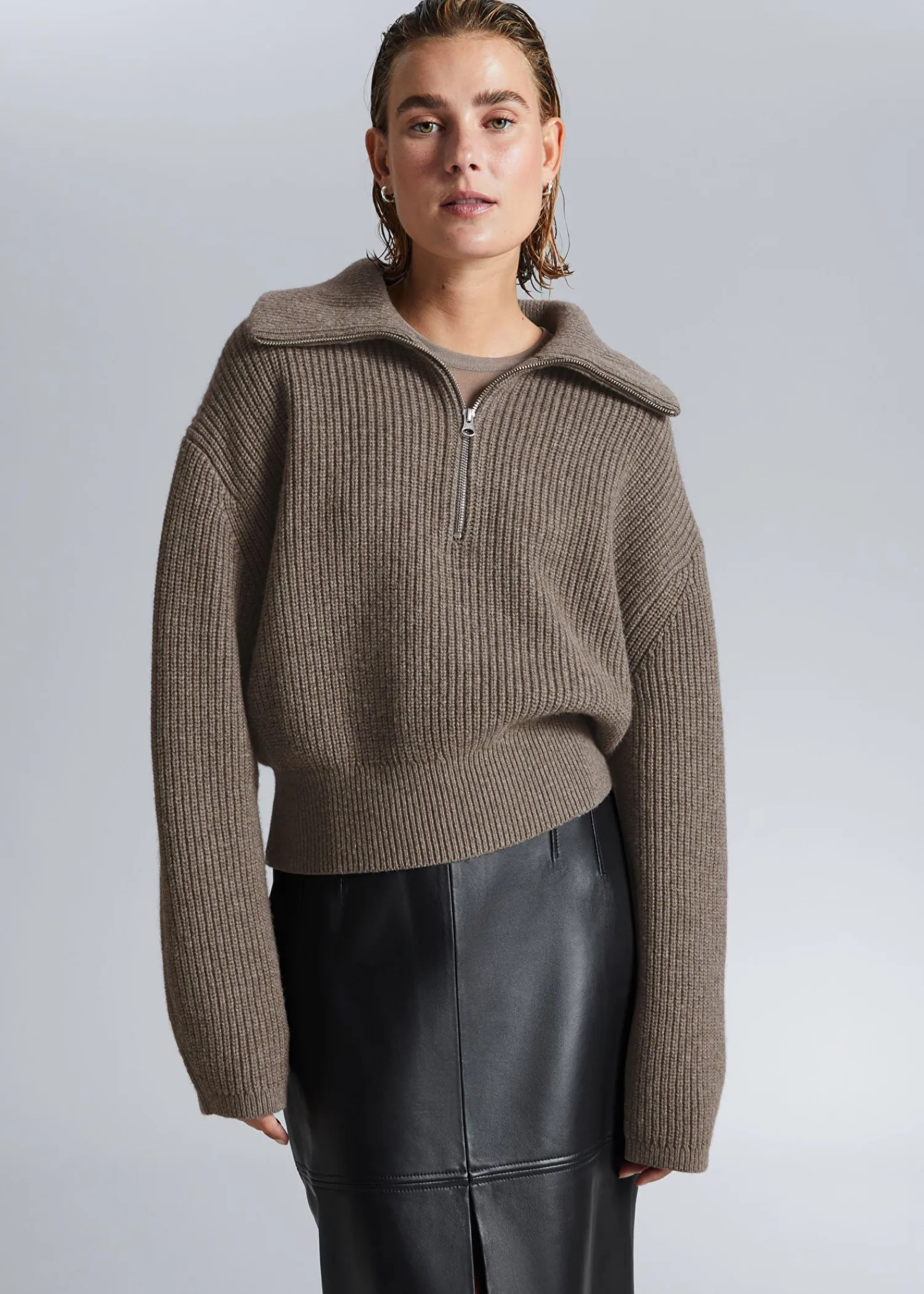 Ribbet Trøje Med Halv Lynlås Strikket Af Merinould. Afslappet Pasform Certificeret I Henhold Til Responsible Wool Standard (Cu815571) Længde På Trøje: 50,5 Cm / 19,9″ (Størrelse S)