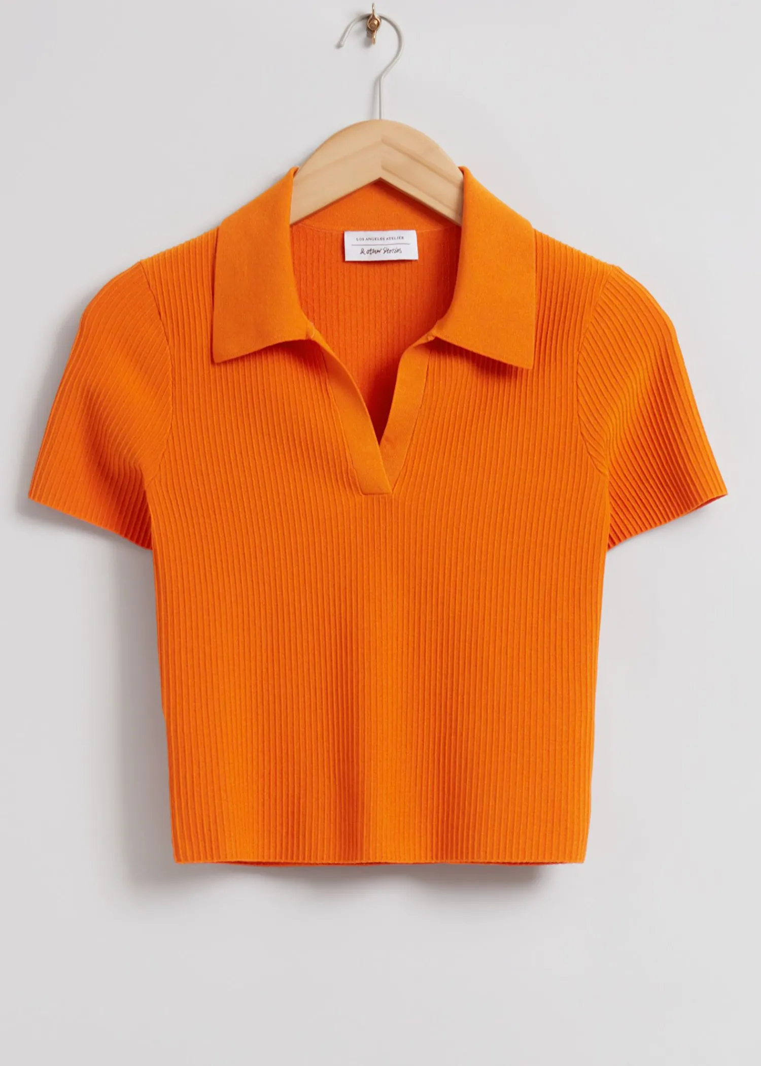 Beskåret Top Med Åben Krave Lavet Af En Blanding Af Materialer. Med En Ribstrikket Finish Med Korte Hætteærmer Og En Åben Krave Med Selvforarbejdede Ærmer Og Kant. Længde På Toppen: 50 Cm / 19,7″ (Eu 36 / Uk 8 / Us 4)