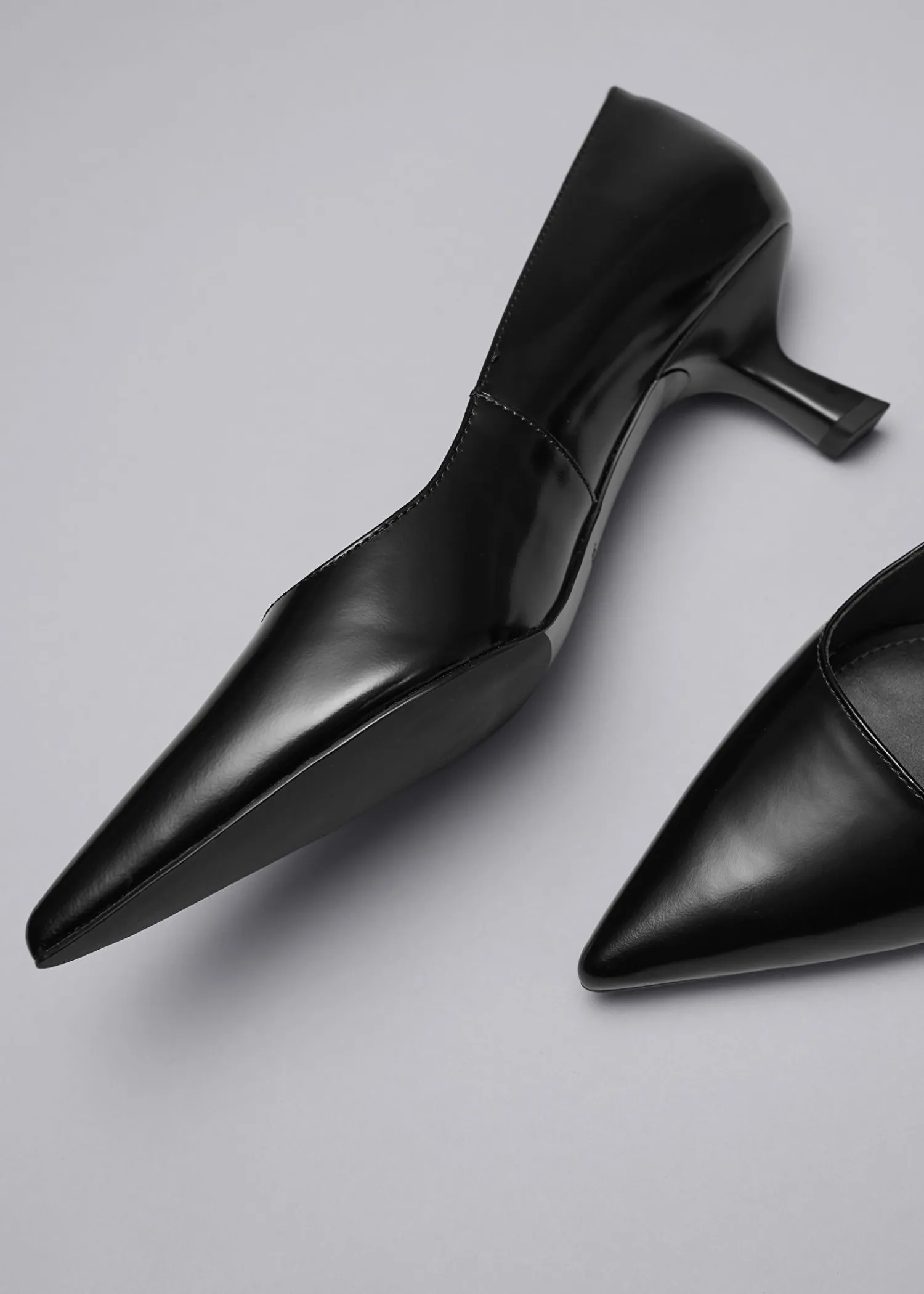 Pumper Lavet Af Smidig Nappa. Designet Med Skarpe Spidse Tæer, En Firkantet Vamp Og Moderne, Vinklede Killingehæle. Afsluttet Med Gummitippede Hæle. Hælhøjde: 4,5 Cm / 1,8″