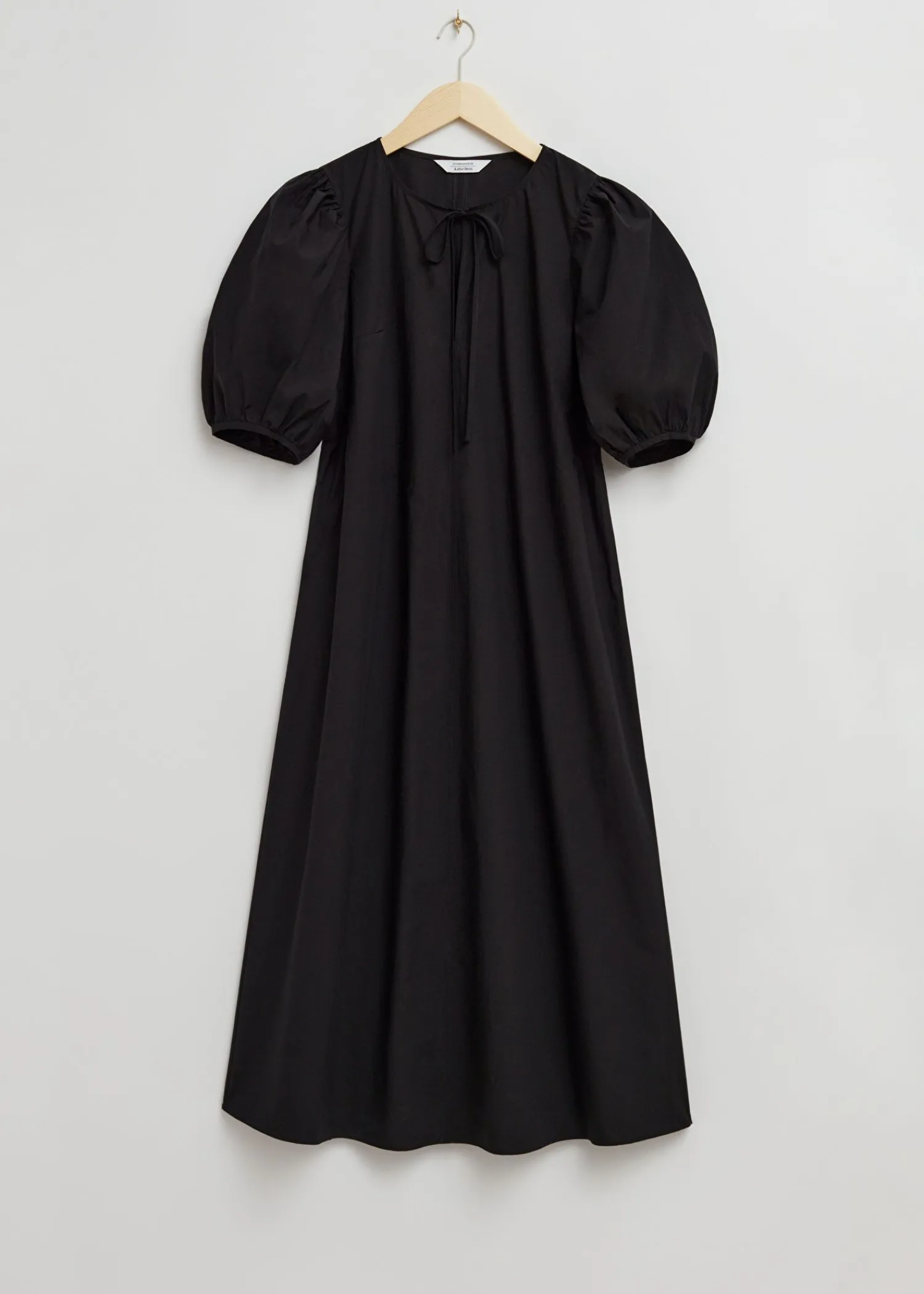 Afslappet Pufærmet Midikjole Med Trekvartlange Rynkede Pufærmer Med Nøglehulsåbning Sikret Med Tynde Bindebånd Skåret I En Afslappet Silhuet Med Løs Pasform. Kjolens Længde: 123 Cm / 48,4″ (Eu 36 / Uk 8 / Us 4)