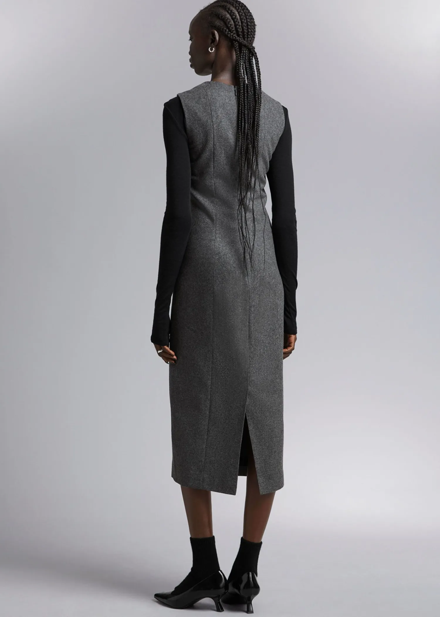 Midikjole I Uld Uden Ærmer Med Firkantet Halsudskæring Og En Figursyet Silhuet. Fuldt Foret Lynlås Ved Halsen Midter Bagslids 70 % Rws Uld Certificeret Af Control Union 893290 Kjolens Længde: 119 Cm / 47″ (Eu 36 / Uk 8 / Us 4)
