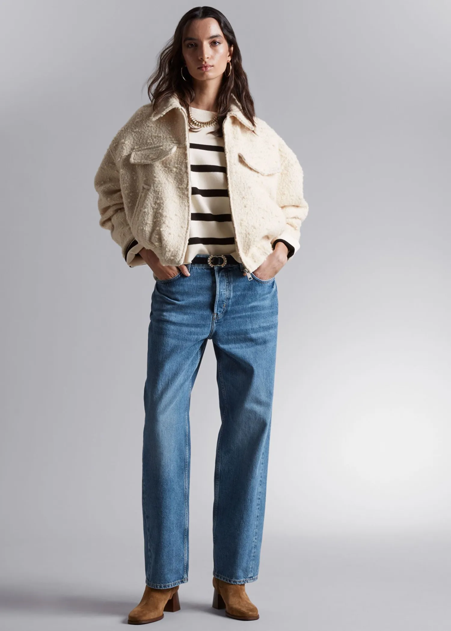 Jakke I En Beskåret, Oversize Silhuet, Der Lukkes Med Lynlås. Fuldforede Duo-Klaplommer På Brystet Duo-Kantede Paspol…