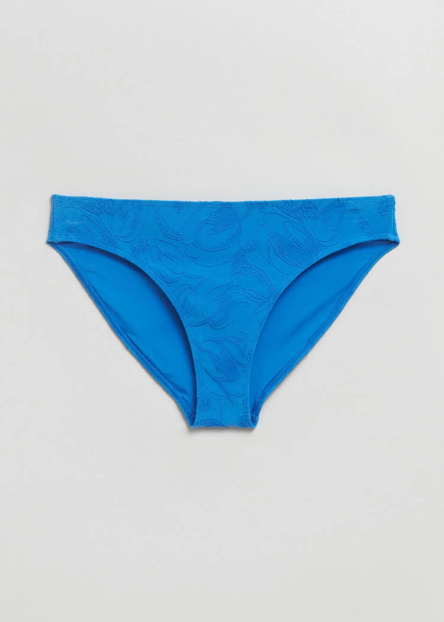 Bikinitrusser Med Almindelig Talje Skåret Af Et Blomstret Tekstureret, Hurtigttørrende Stof. Middel Dækning