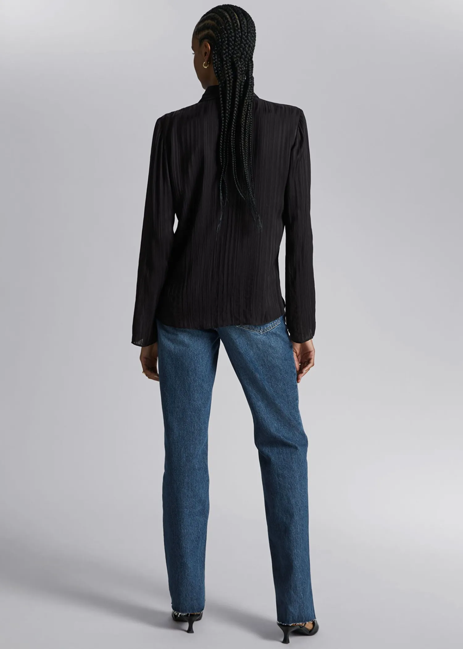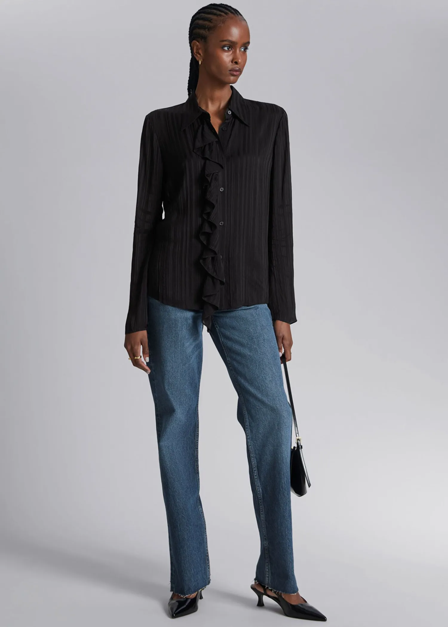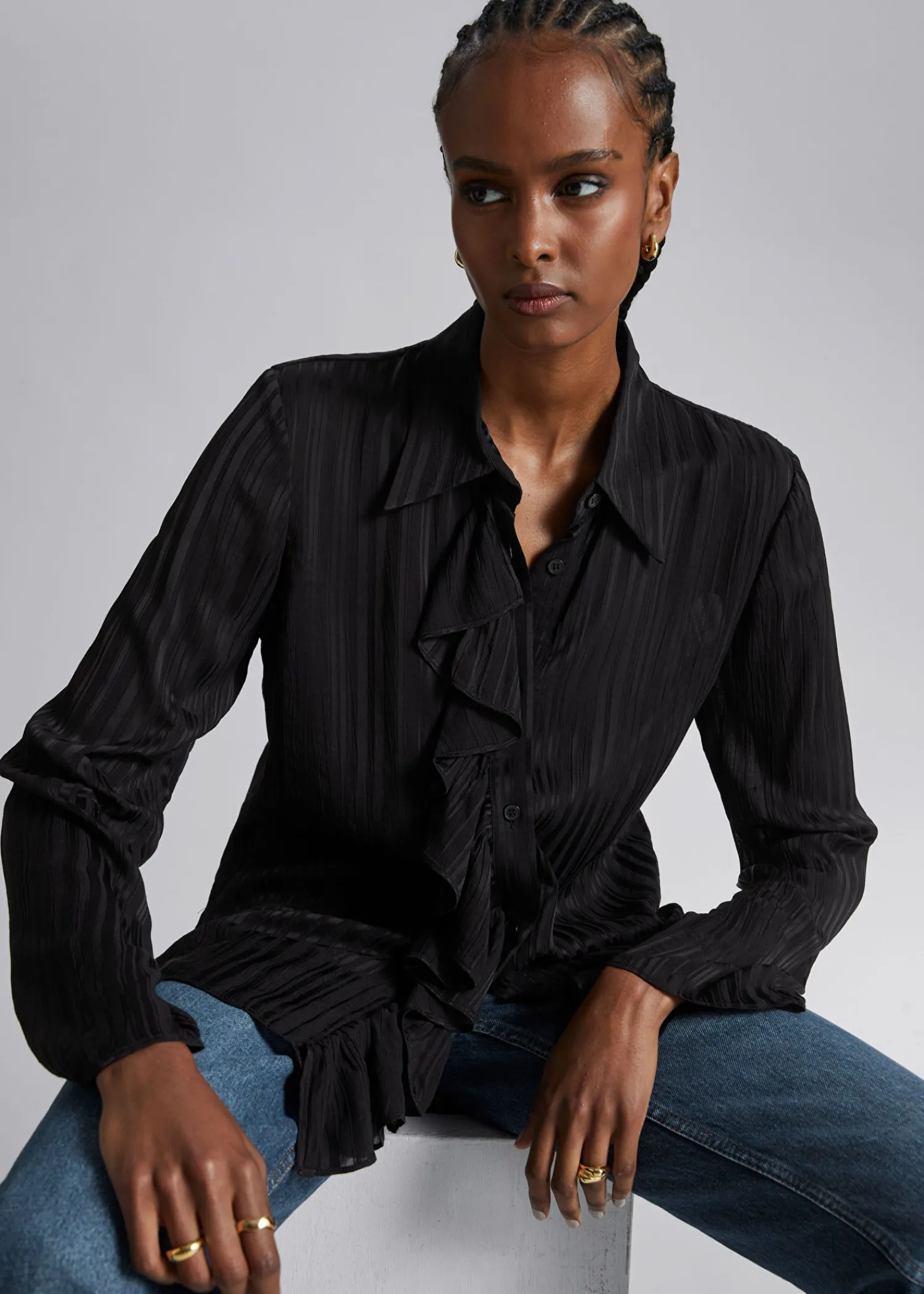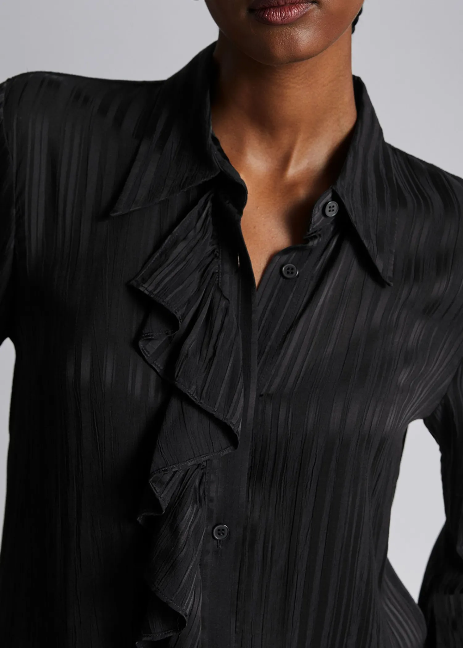 Slank Skjorte I Gennemsigtig, Stribet Finish. Sporet Med Tonale Knaplukninger Og En Flæsestolpe. Længde På Skjorte: 6…