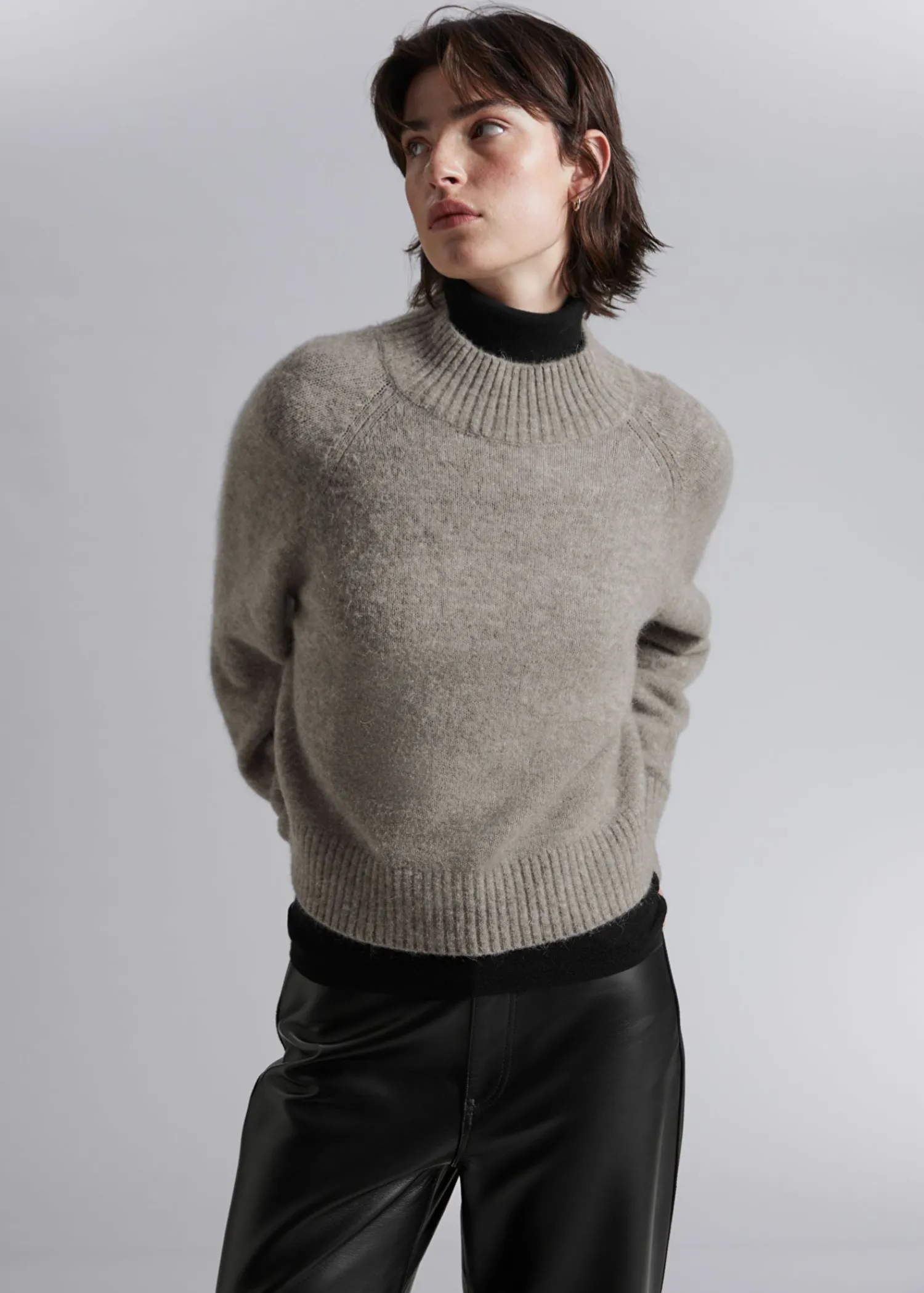 Mock-Hals Uldstrikket Trøje Med Raglanærmer. Ribbet Hals, Manchetter Og Kant Certificeret I Henhold Til Responsible Wool Standard (Cu810300) Længde På Trøje: 51 Cm / 20,1″ (Størrelse S)