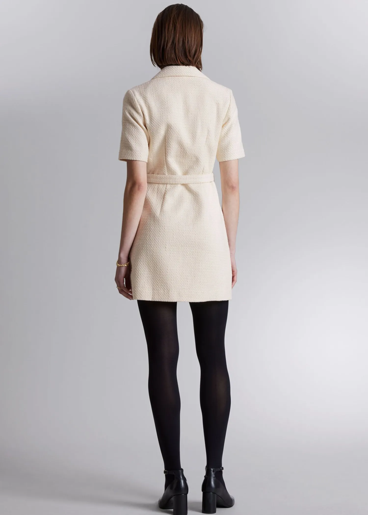 Minikjole I Tweed Med Krave Med Korte Ærmer. Sporet Med Duo Knaplukninger Og Fastgjort Med Et Tonalt Bælte. Slim Fit Fuldt Foret Lynlås I Siden Kjolens Længde: 85 Cm / 33,5″ (Eu 36 / Uk 8 / Us 4)