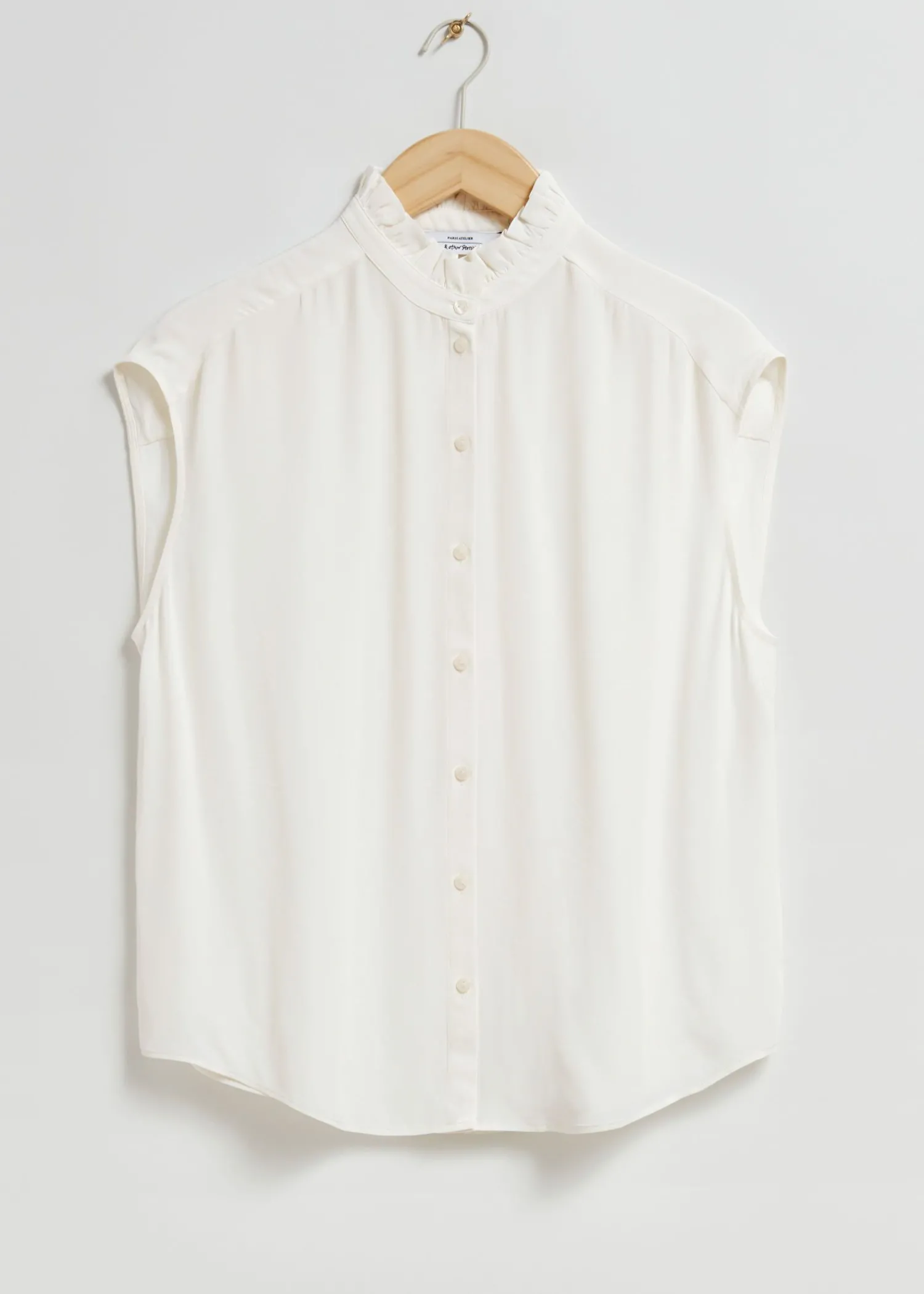 Bluse Med Flæsekrave Lavet Af Glat Silkelignende Stof. Designet Med Korte Ærmer Og En Højflæset Krave Med En Tynd Knappet Stolpe Og Buet Kant. – Løs Pasform – Rygstykke, Rynker Længde På Blusen: 64 Cm / 25,2″ (Eu 36 / Uk 8 / Us 4) Vores Designs Fra Paris Er Romantiske, Ubesværede Og Smarte.