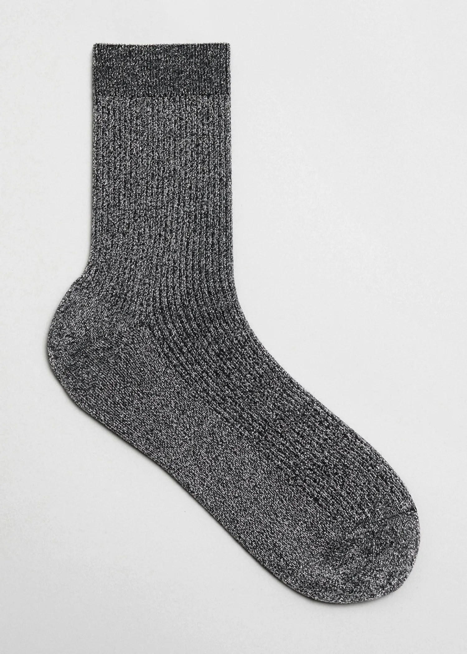 Ribstrikkede Ankelstrømper Med Metalliseret Lurex-Tråd.