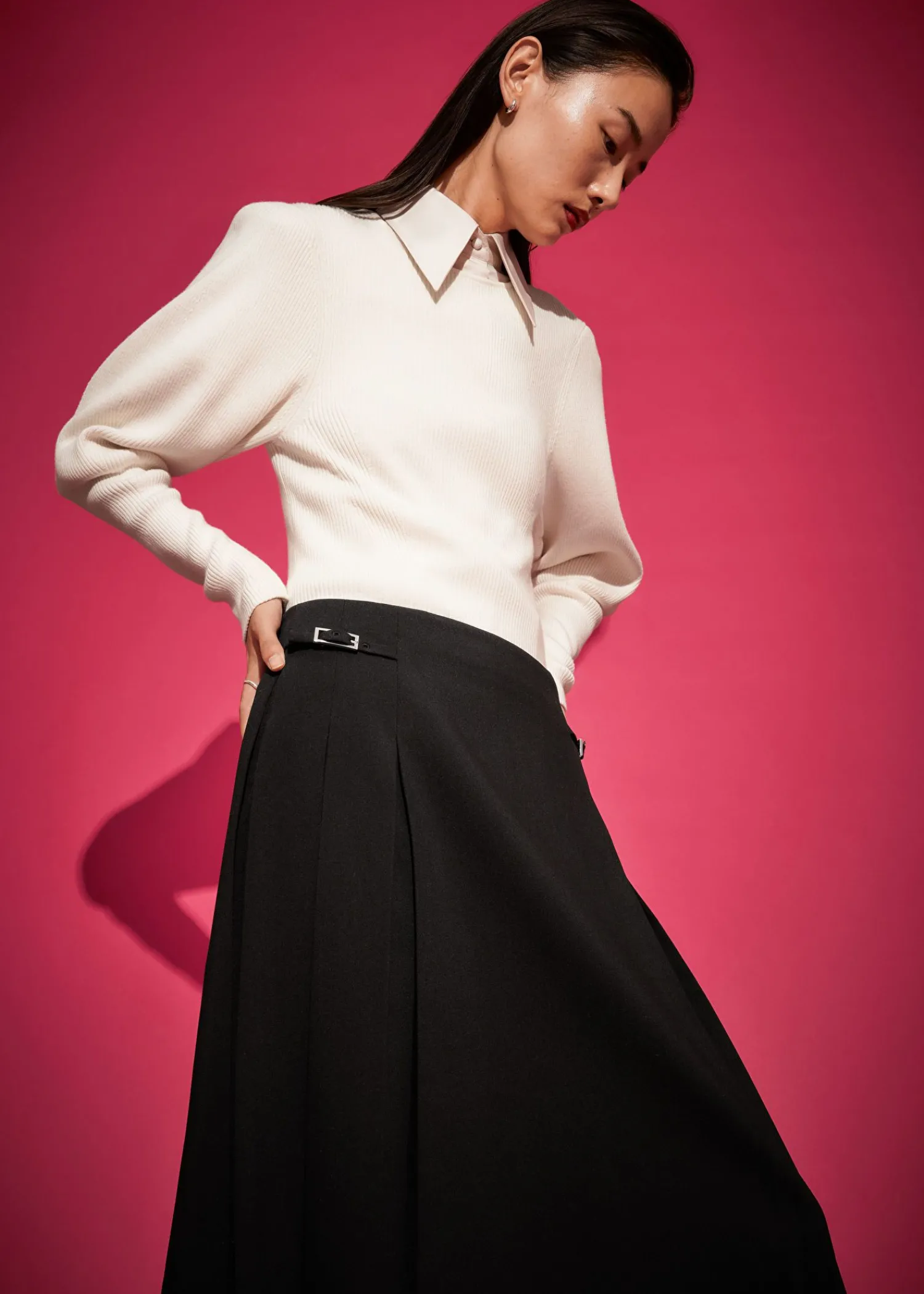 Midi-Nederdel Med Plisserede Detaljer I Siderne Og Bagpå. Metalspændedetaljer I Taljen Duo Sidesømslommer Og Duo Paspolerede Lommer Bagpå Lynlås I Siden Længde På Indersøm: 68 Cm / 26,8″ (Eu 36 / Uk 8 / Us 4)
